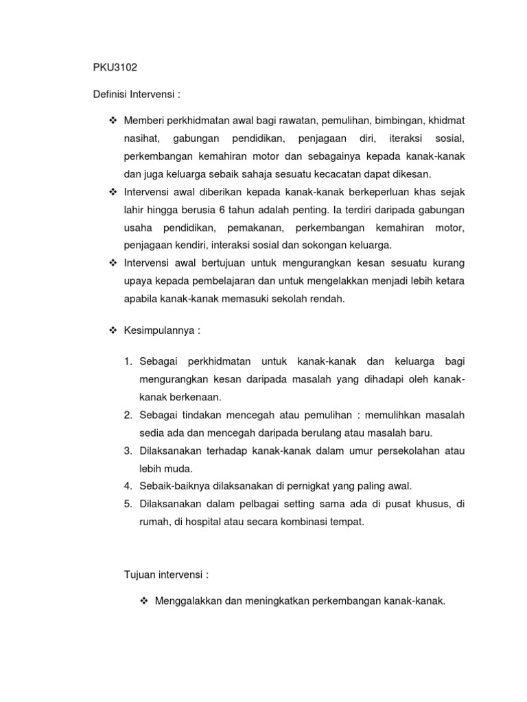 Kepentingan Intervensi Awal Kepada Kanak Kanak Berkeperluan Khas Pdf